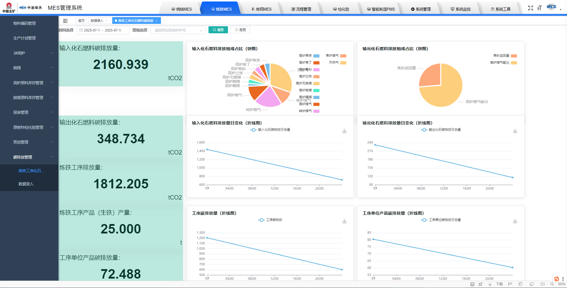攻堅落地助力市場。為驗證技術(shù)可行性,立足公司研發(fā)課題《基于系統(tǒng)優(yōu)化的鋼鐵企業(yè)能源管理與碳排放系統(tǒng)開發(fā)與應(yīng)用》,中冶華天南京電氣選取鋼鐵生產(chǎn)關(guān)鍵環(huán)節(jié)開展demo設(shè)計:在冀南鋼鐵實現(xiàn)高爐噸鐵碳排放動態(tài)計算,在興鑫鋼鐵構(gòu)建燒結(jié)過程核算模型,在亞新煉鋼和攀長特軋鋼驗證轉(zhuǎn)爐、熱軋工序的碳排放因子動態(tài)修正算法。經(jīng)上述多場景Demo測試,團隊構(gòu)建起覆蓋“燒結(jié)—高爐—轉(zhuǎn)爐—軋鋼”全流程碳排放核算案例,攻克了生產(chǎn)數(shù)據(jù)碎片化、數(shù)據(jù)時間維度不對齊、核算邊界不統(tǒng)一、因子動態(tài)更新困難等技術(shù)瓶頸,為山西亞新煉鋼集控項目前期市場調(diào)研與投標(biāo)工作提供了支撐。